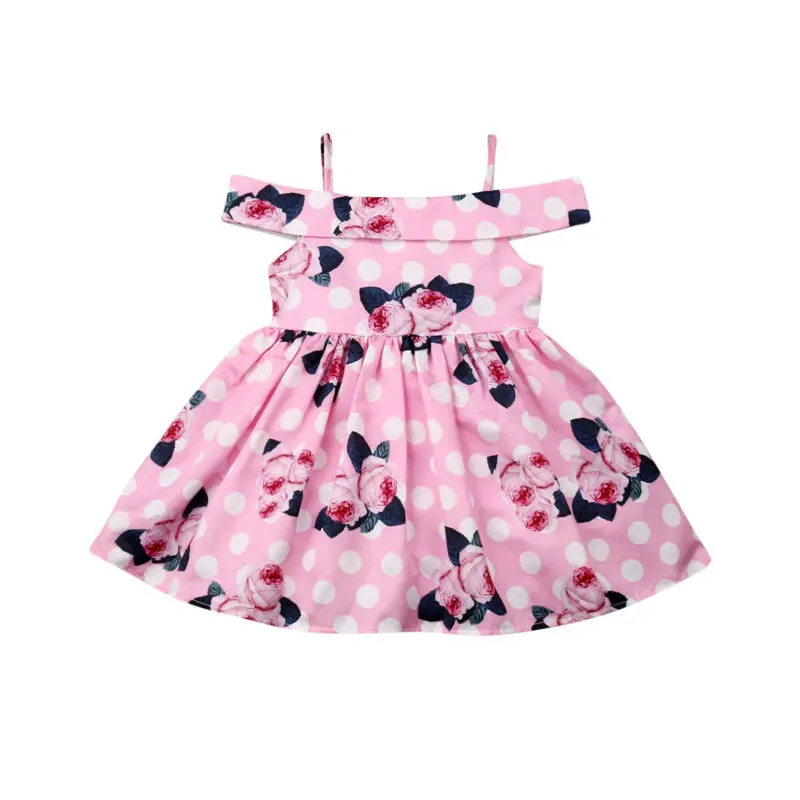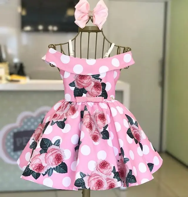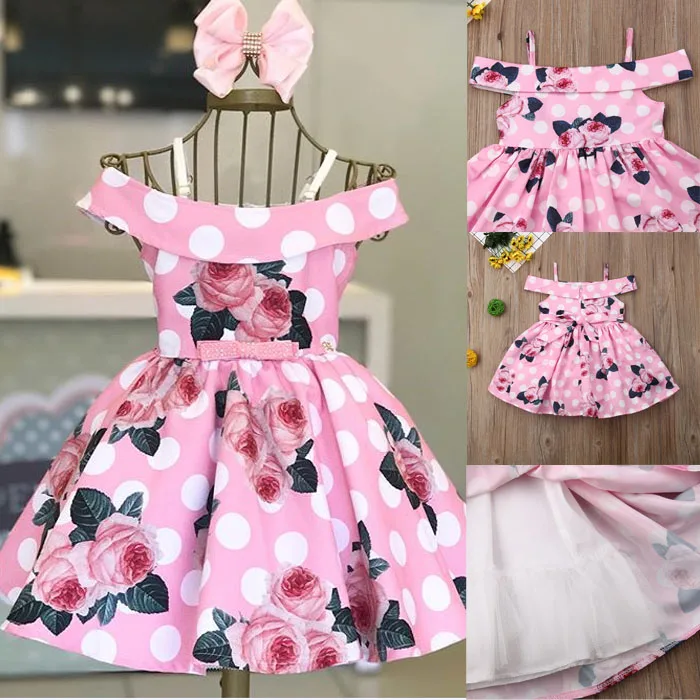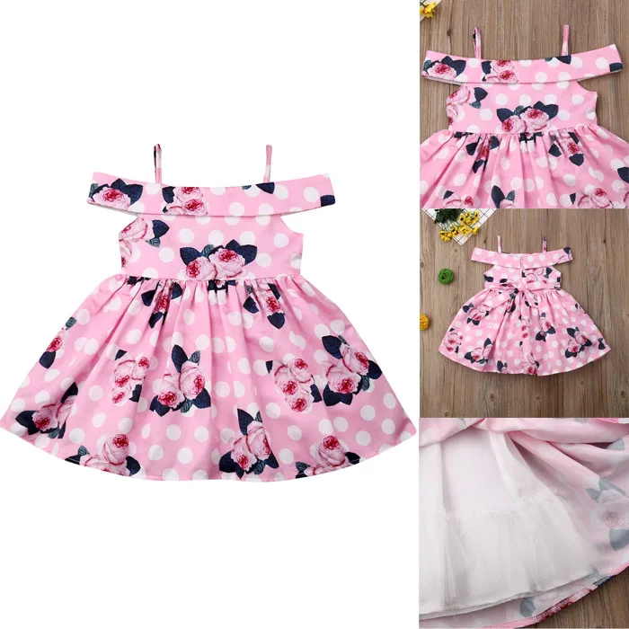 Модное детское платье с открытыми плечами и цветочным принтом для маленьких девочек, летние вечерние ничные розовые платья принцессы для свадьбы