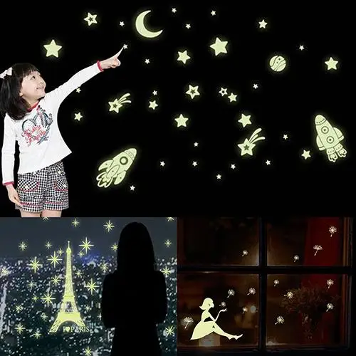 DIY звезды Эйфелева башня Светящиеся в темноте настенные наклейки флуоресцентные светящиеся наклейки