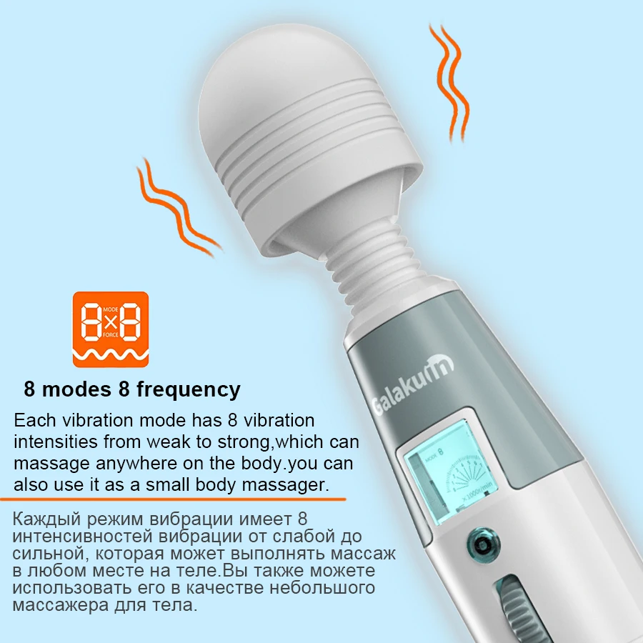 Каждый режим вибрации имеет 8 уровней интенсивности вибрации от слабого до сильного, Который может массировать в любом месте тела. Вы также можете использовать его как небольшой массажер для тела.