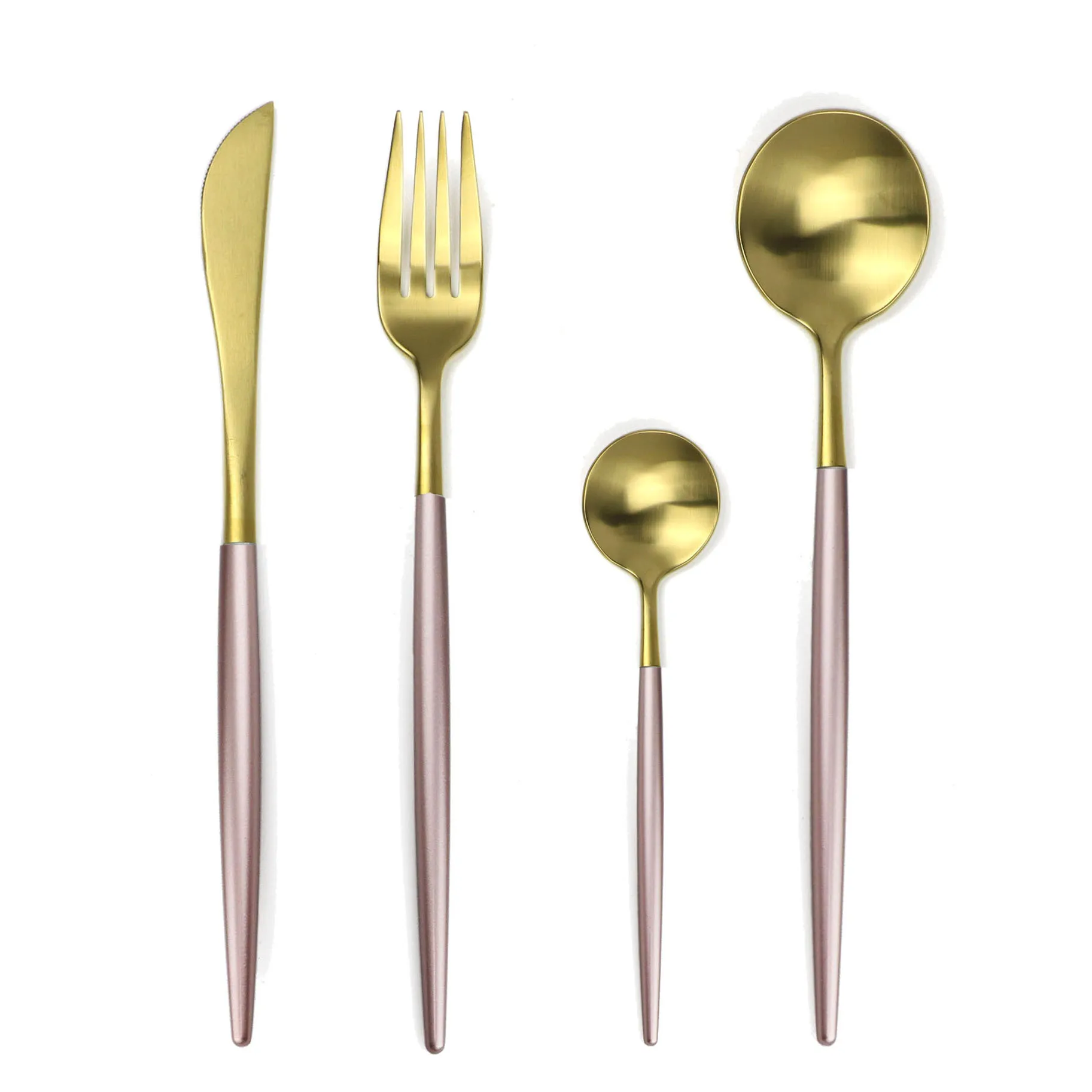 Набор матовых столовых приборов из Нержавеющей Стали Розовые золотые столовые приборы, 304, вилка, ложка, посуда