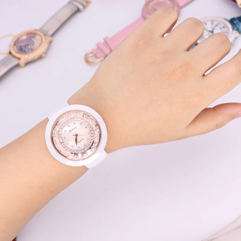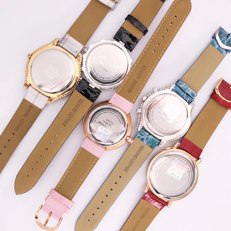 Распродажа! Скидка, женские часы Melissa со стразами, в японском стиле Mov Not, браслет из кожи, Подарочная коробка для девочек