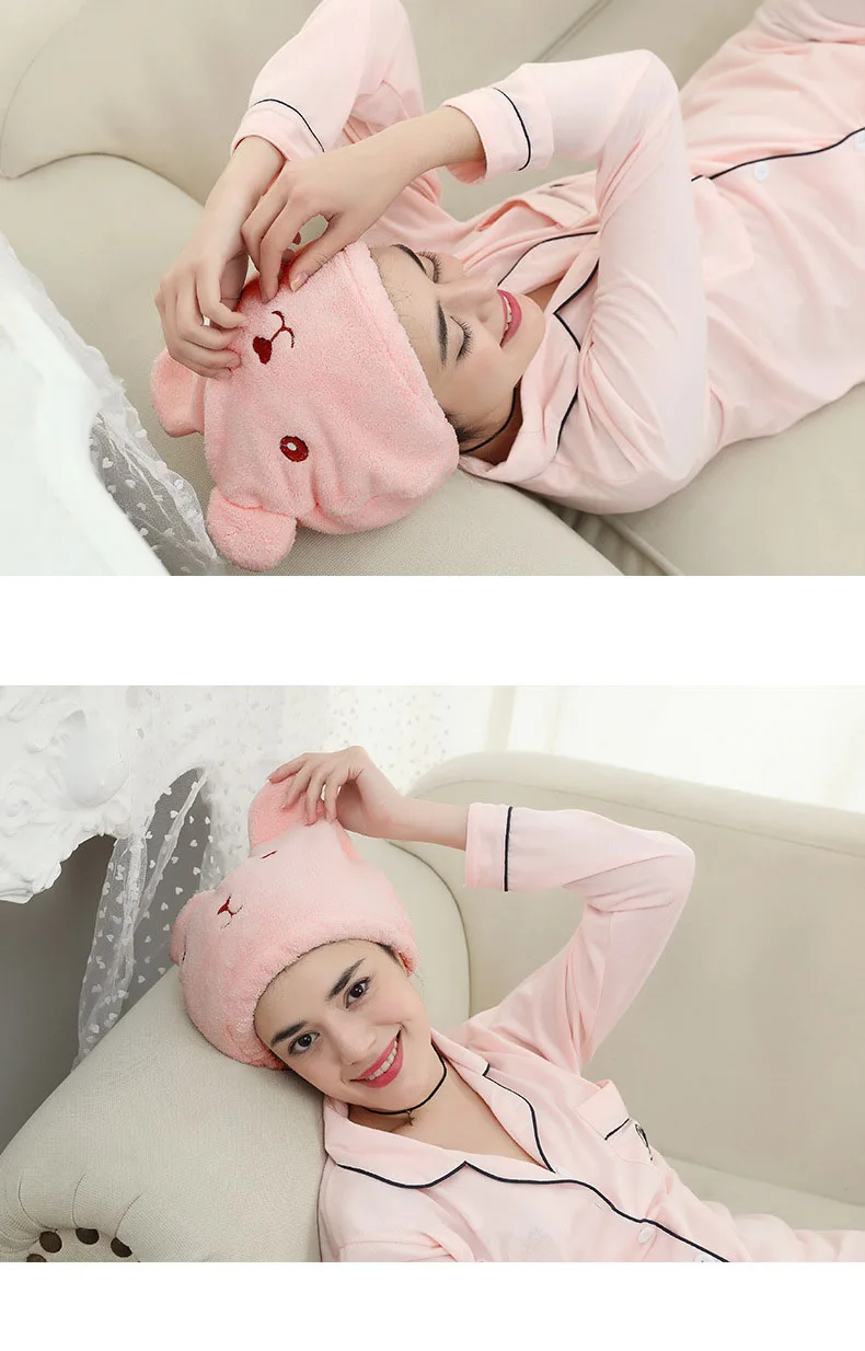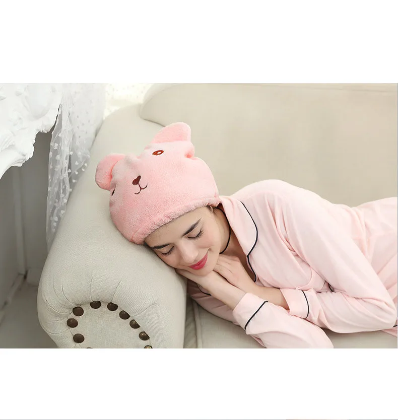 Милая шапочка из микрофибры для обертывания волос с медведем, e-тюрбан, шапочка для душа, быстросохнущая шапочка для волос и душа, повязка на полотенце, шапочка для купания, аксессуары для ванной комнаты