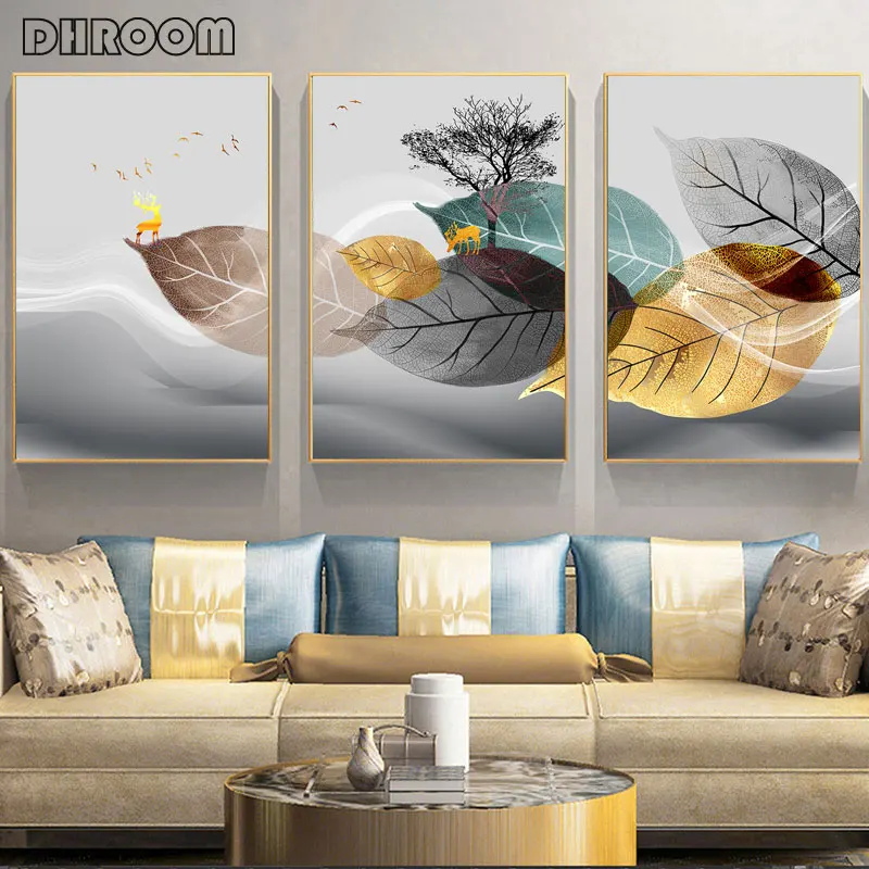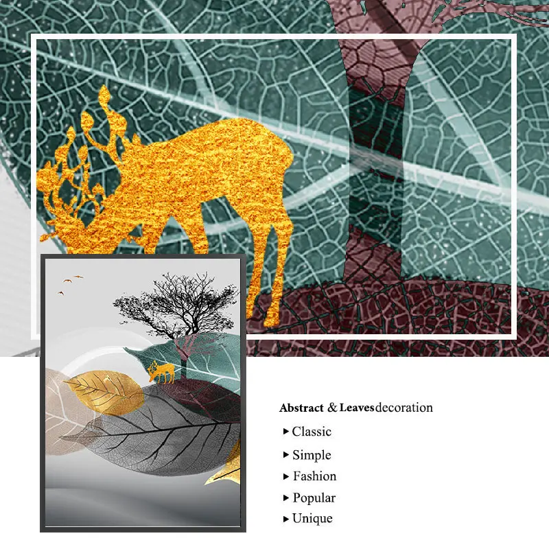 Скандинавский абстрактный лист золотой Лось Художественная печать н...