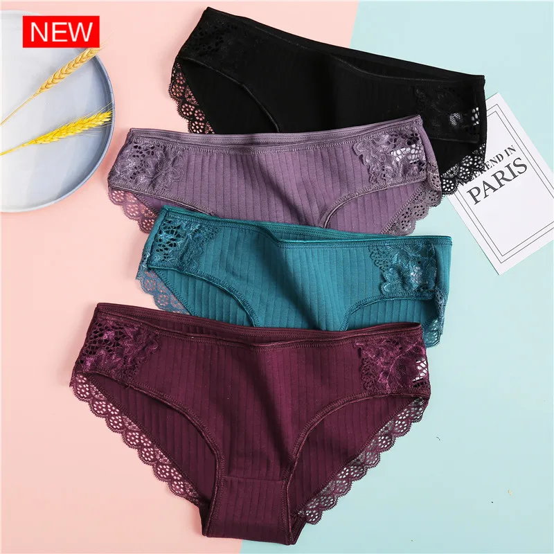 Трусы женские FINETOO, мягкие, однотонные, полосатые, сексуальное нижнее белье, хлопковые трусики для девушек
