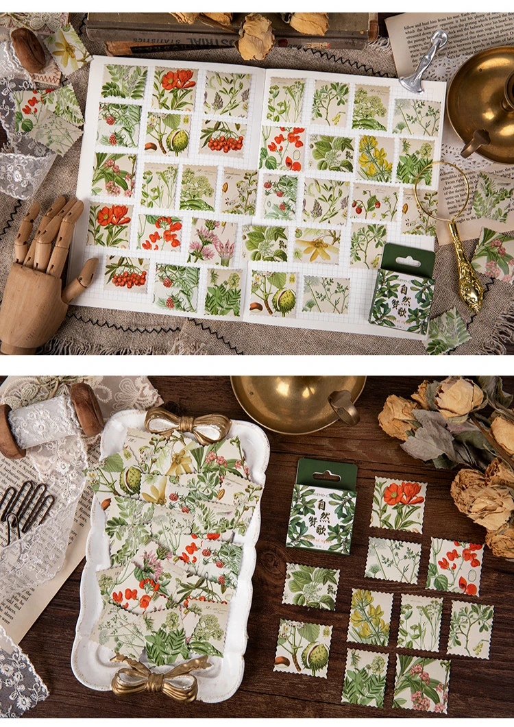 46 шт.кор. натуральные растения канцелярские наклейки винтажный шта...
