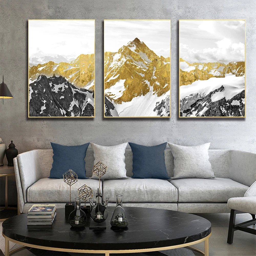 Декоративная картина на холсте, в скандинавском стиле, с изображением Золотой Снежной Горы, абстрактный постер, настенный постер для гостиной и печати