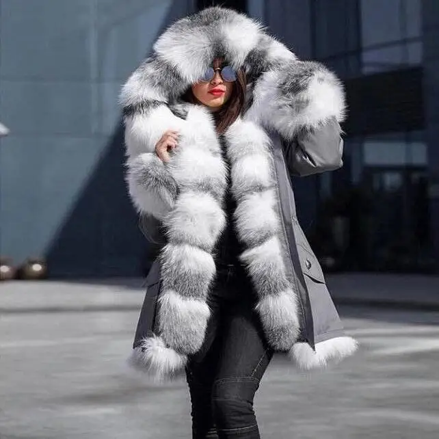 Брендовая новая стильная зимняя куртка с большим шерстяным воротником, женские модные теплые толстые свободные пальто, повседневная куртка с капюшоном и длинным рукавом, Женское пальто