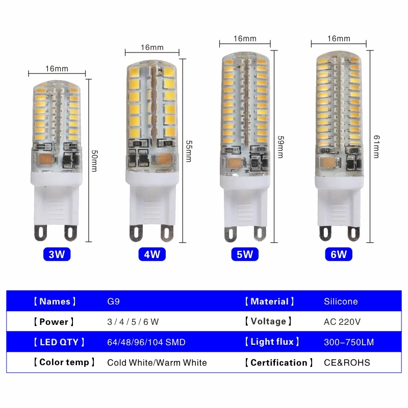 6 шт.лот G9 LED 3 Вт 4 Вт 5 Вт 6 Вт 220-240 В Светодиодная лампа G9 Светодиодная лампа SMD 2835 3014 Светодиодный светильник G9 заменяет галогенную лампу 30 Вт60 Вт