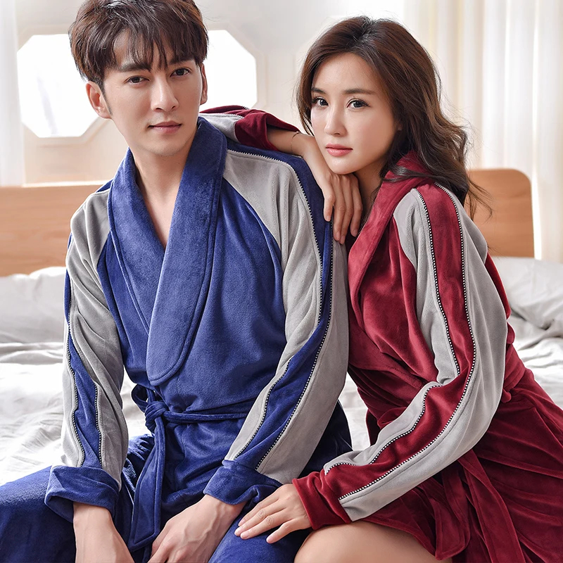Для влюбленных; Зимние остров бархатный халат кимоно теплый банный халат из флиса кораллового цвета для мужчин размера плюс M-XXXL халат для женщин, одежда для сна