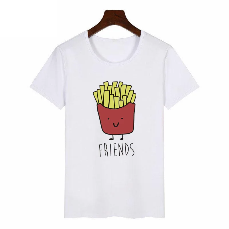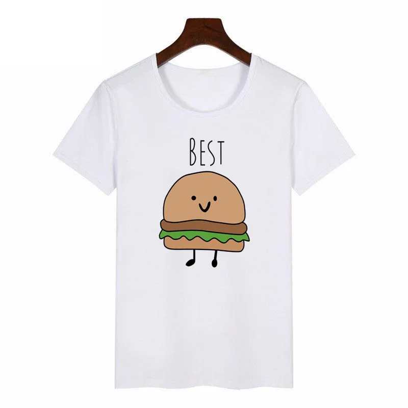 Футболка женская хлопковая с надписью Best Friend и изображением гамбургера и картошки фри