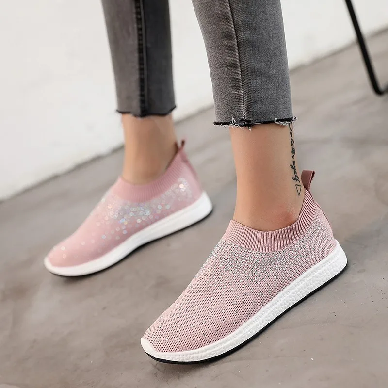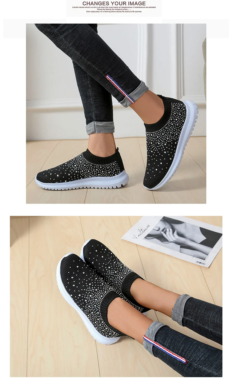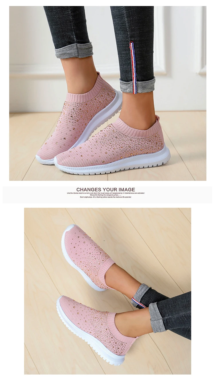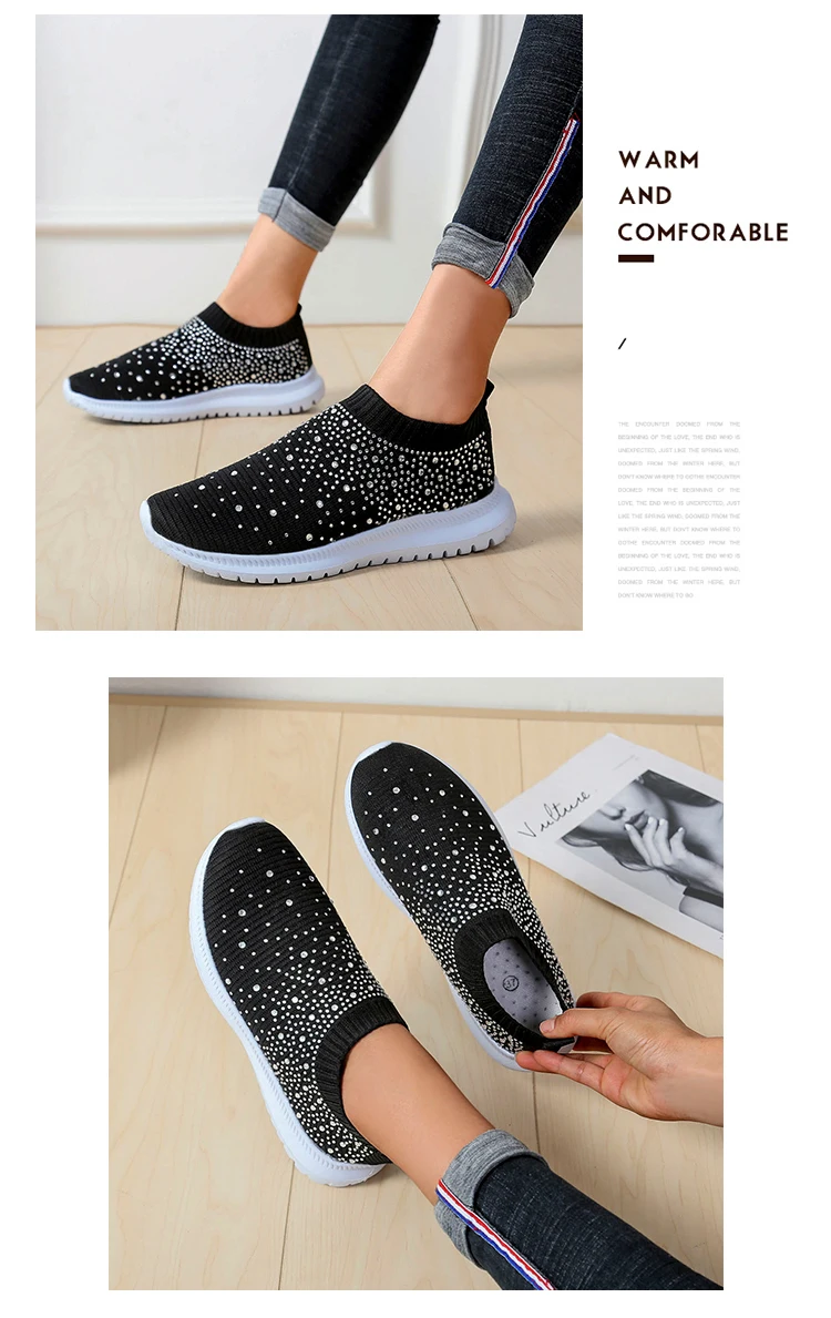 Женские кроссовки на плоской подошве со стразами; Модные шикарные кроссовки; Повседневные носки без шнуровки; Кроссовки; Зимняя женская Вулканизированная обувь; zapatillas mujer