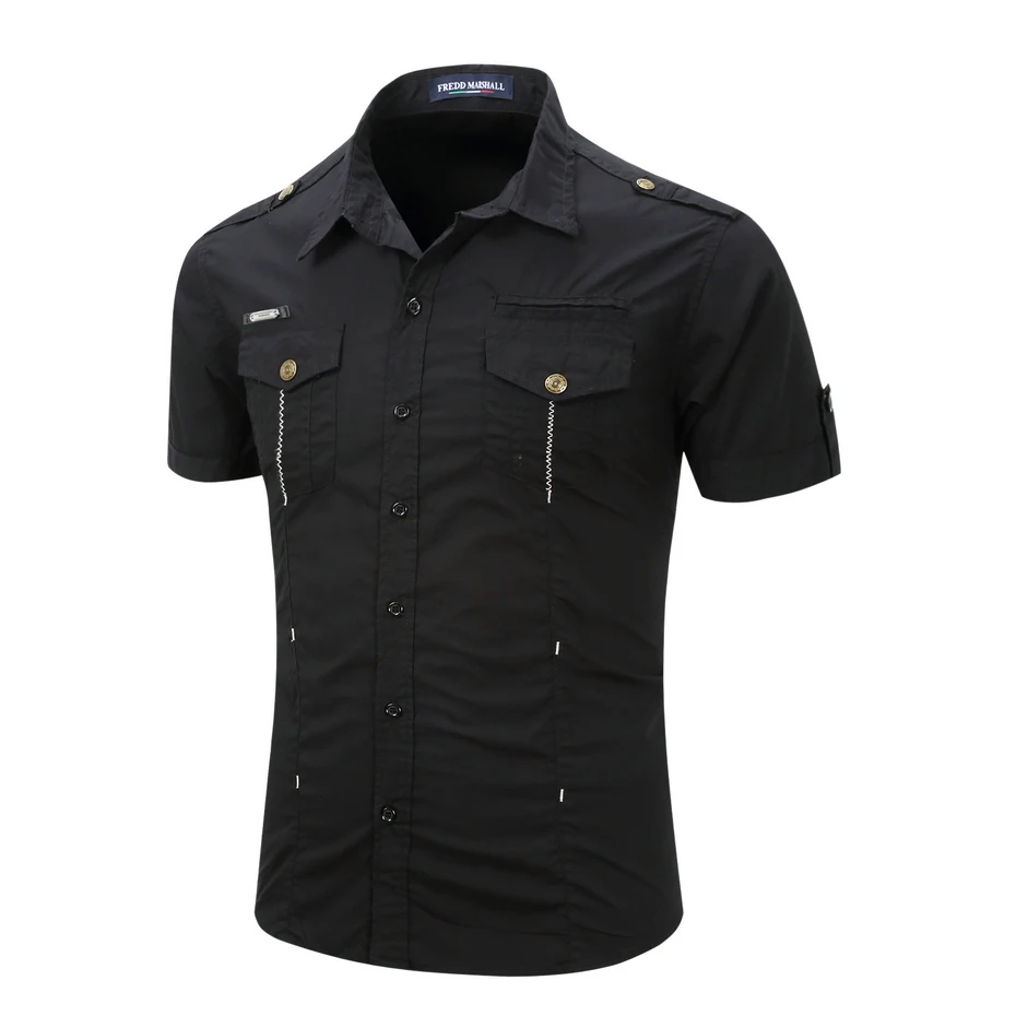 Рубашка-карго мужская повседневная, рабочая рубашка с короткими рук...
