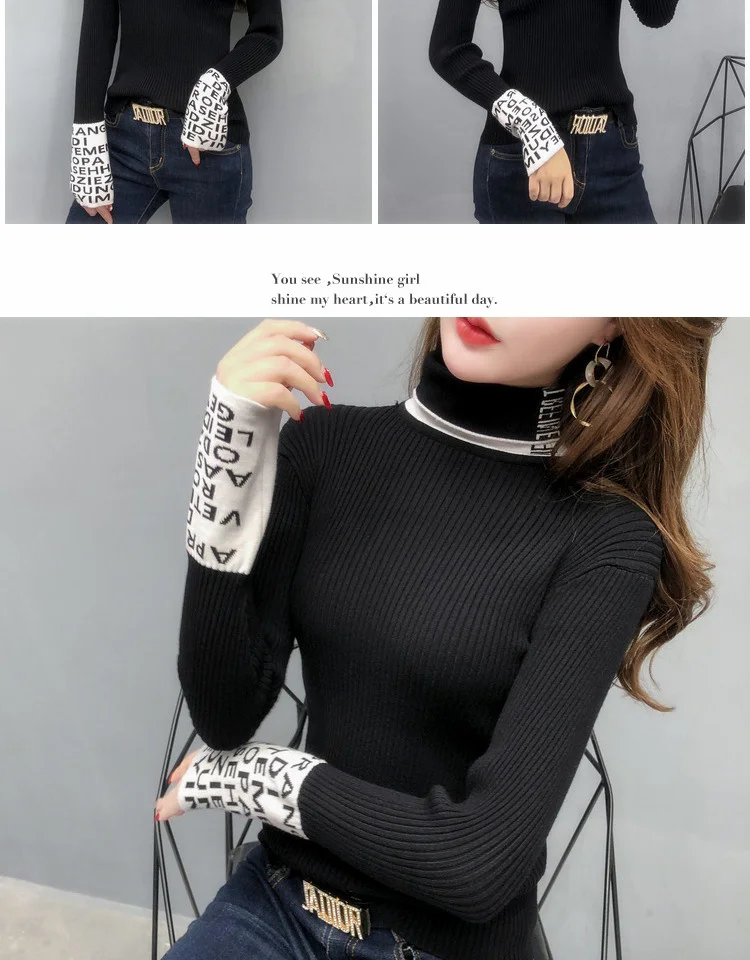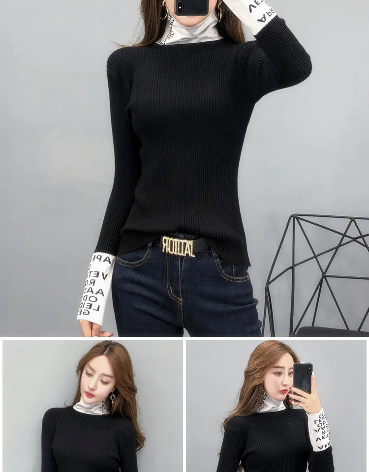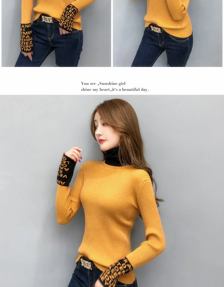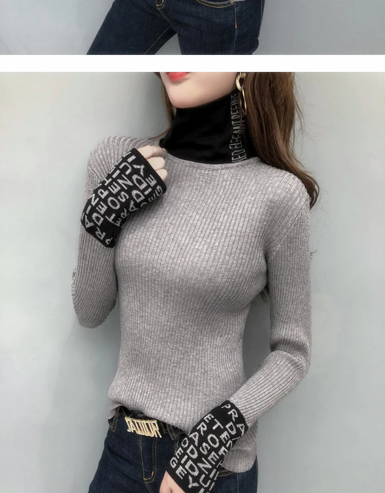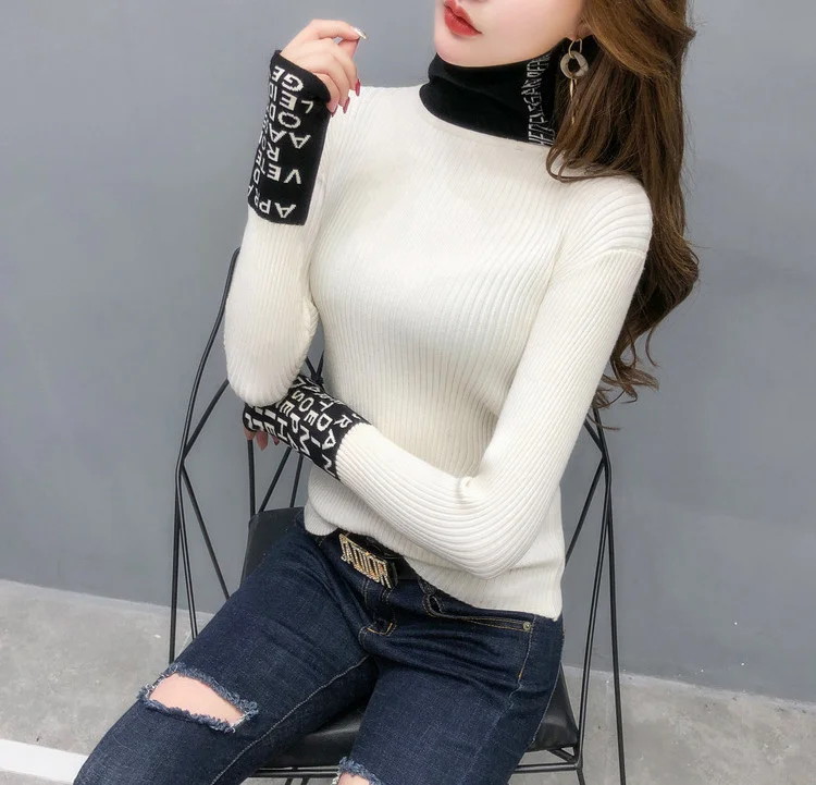 Свитер женский трикотажный с длинным рукавом и высоким воротником, весна-осень 2021