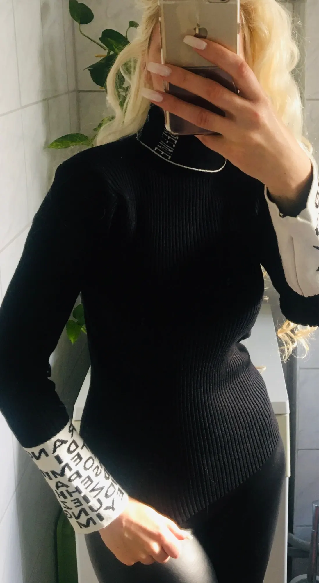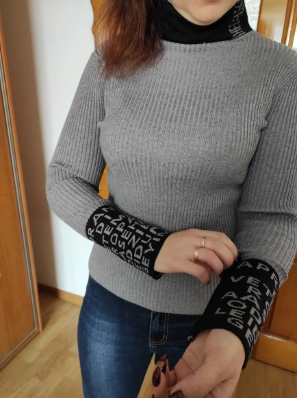 Качество водолазки хорошее, на 46-48 заказывала XL. Единственное, водолазка короткая по длине. Изделие чуть ниже талии. Если наклониться, спина будет голая. Я ожидала, что изделие будет немного длиннее. В целом, модель интересная.