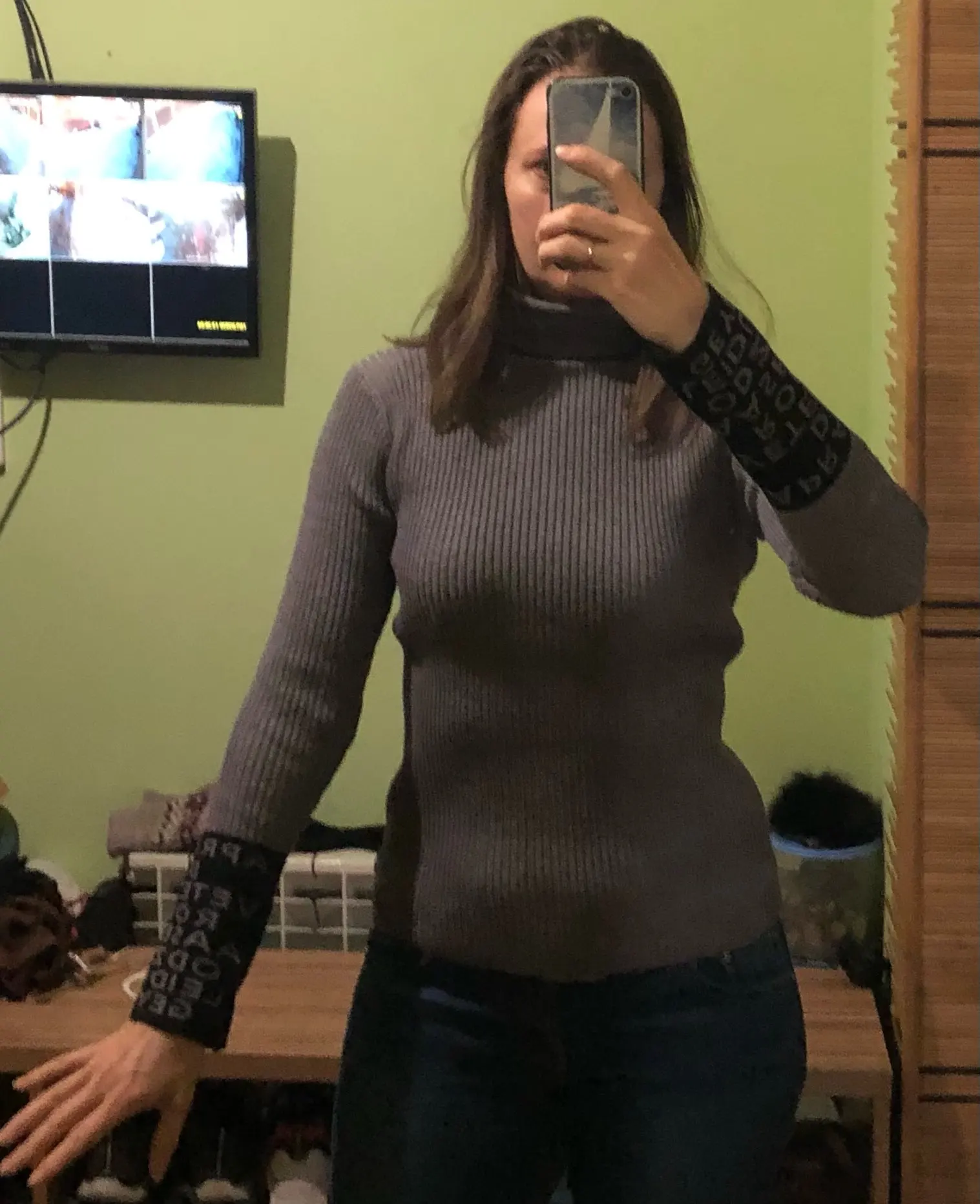 Все просто идеально, только свитер немного короткий.