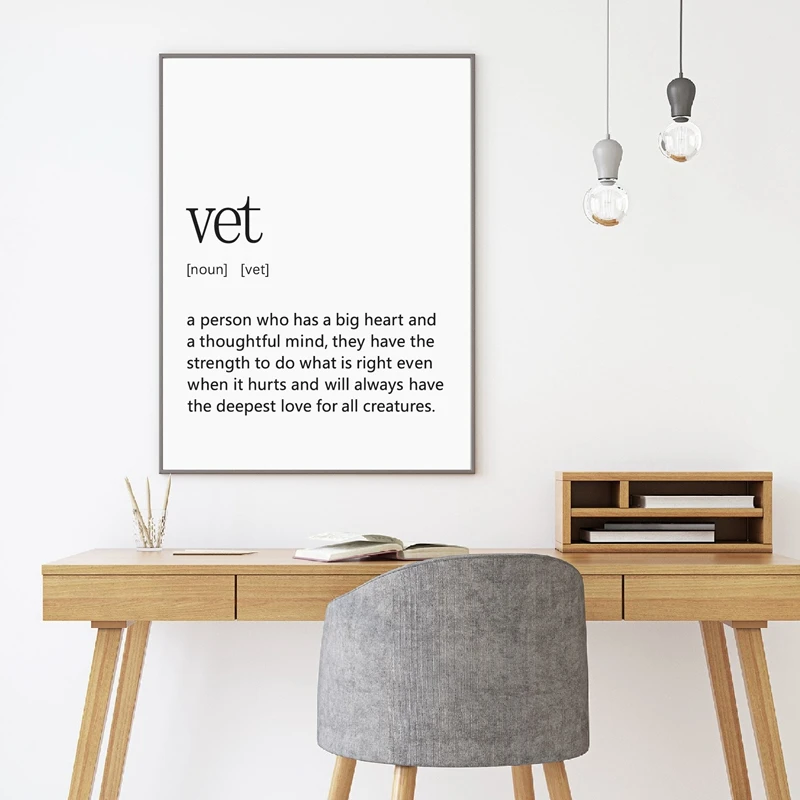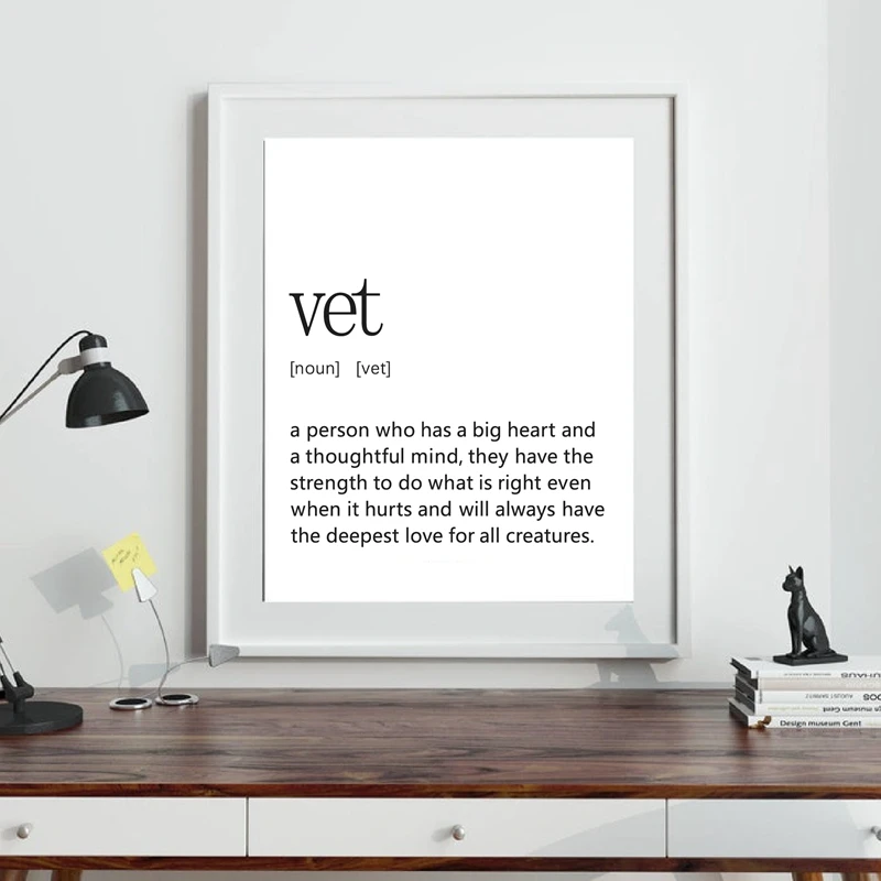 Ветеринар определение печать ветеринарный Подарок Современная ветеринарная Настенная картина холст живопись черный белый постер ветеринар офисный Декор
