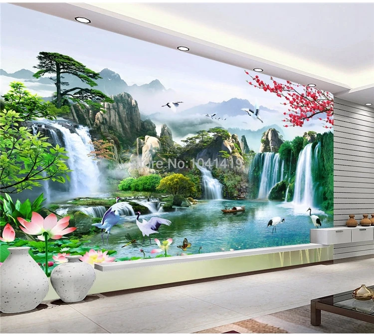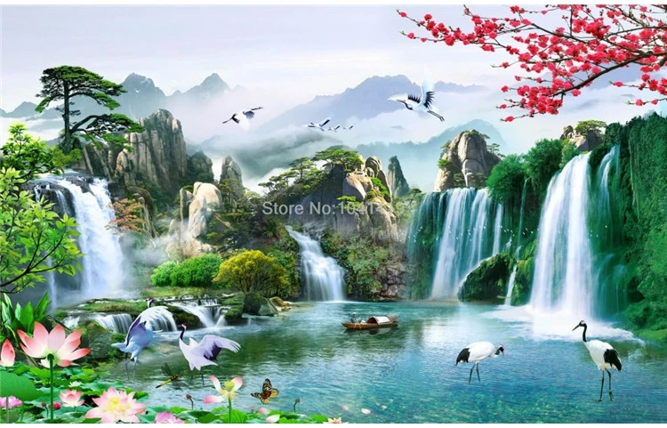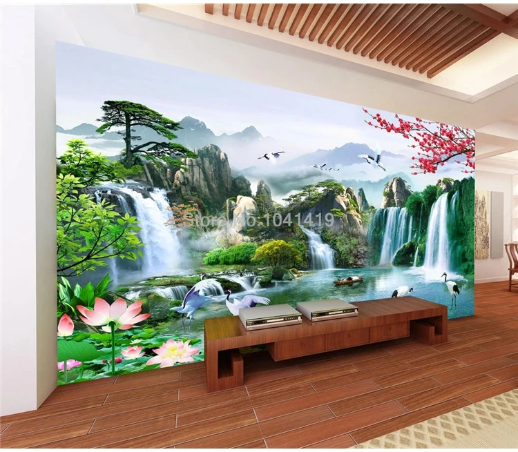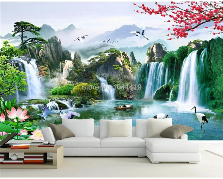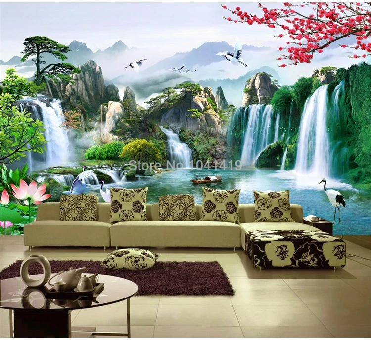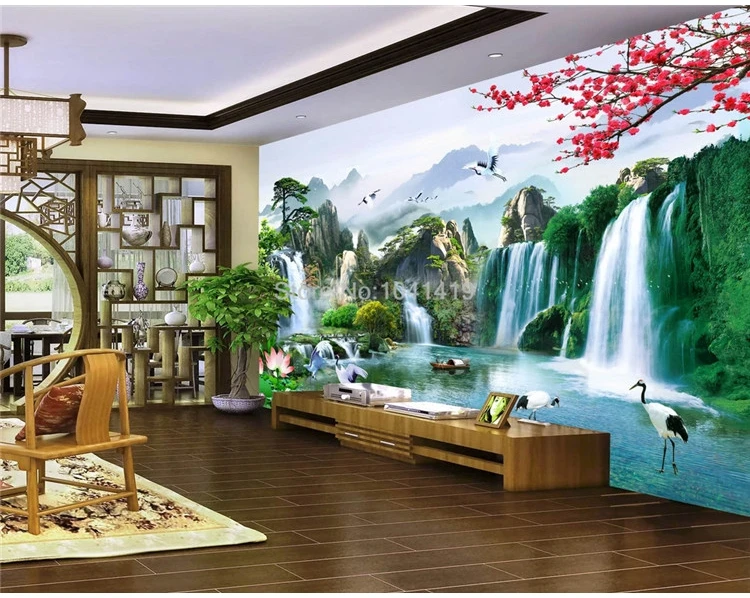Настенные обои на заказ в китайском стиле, 3D-обои с изображением водопадов, природного ландшафта, гостиной, телевизора, дивана, кабинета, классический Декор для дома