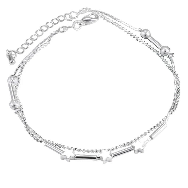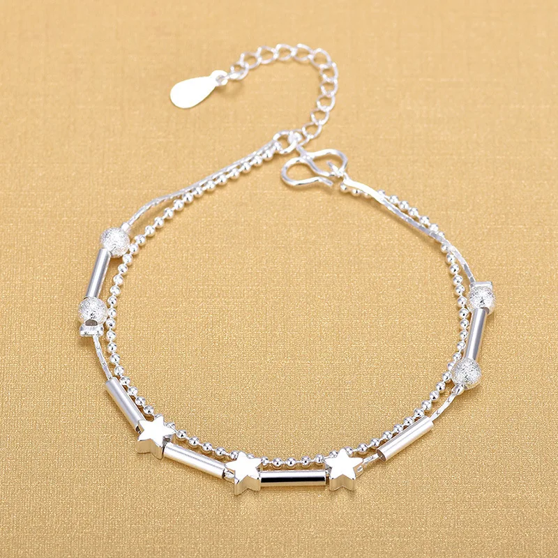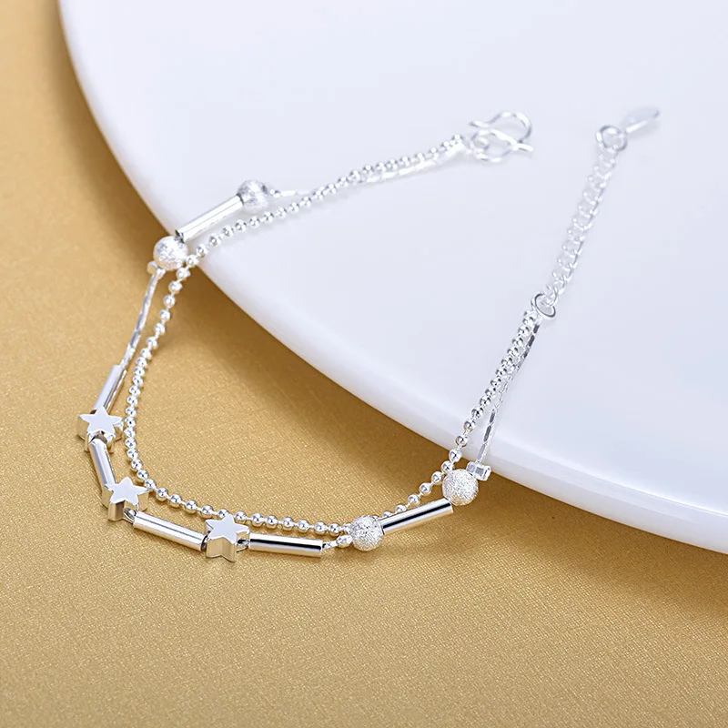 Нежный 925 пробы Серебряный двойной слой звезда Шарм Браслеты для женщин Подарки на день рождения ювелирные изделия