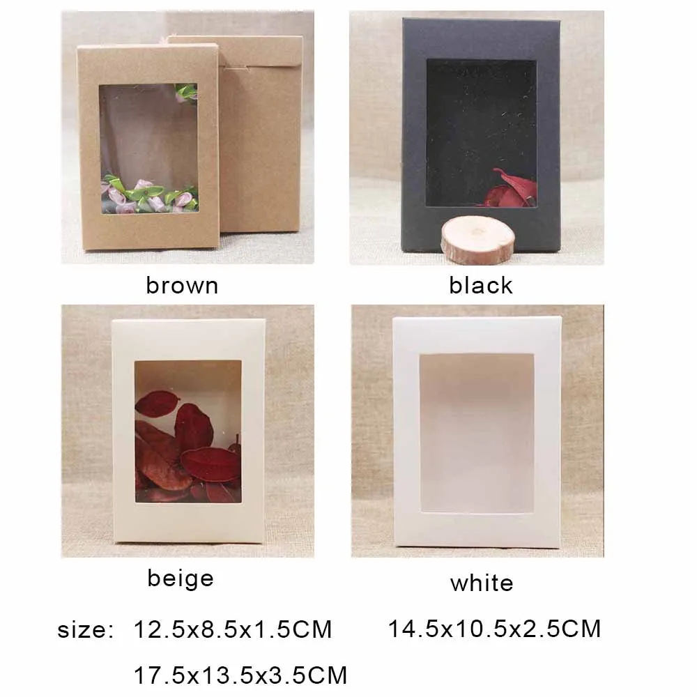 5 шт., бумажная коробка с окном, белаячернаякрафт-бумага