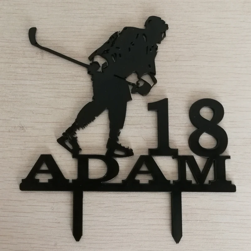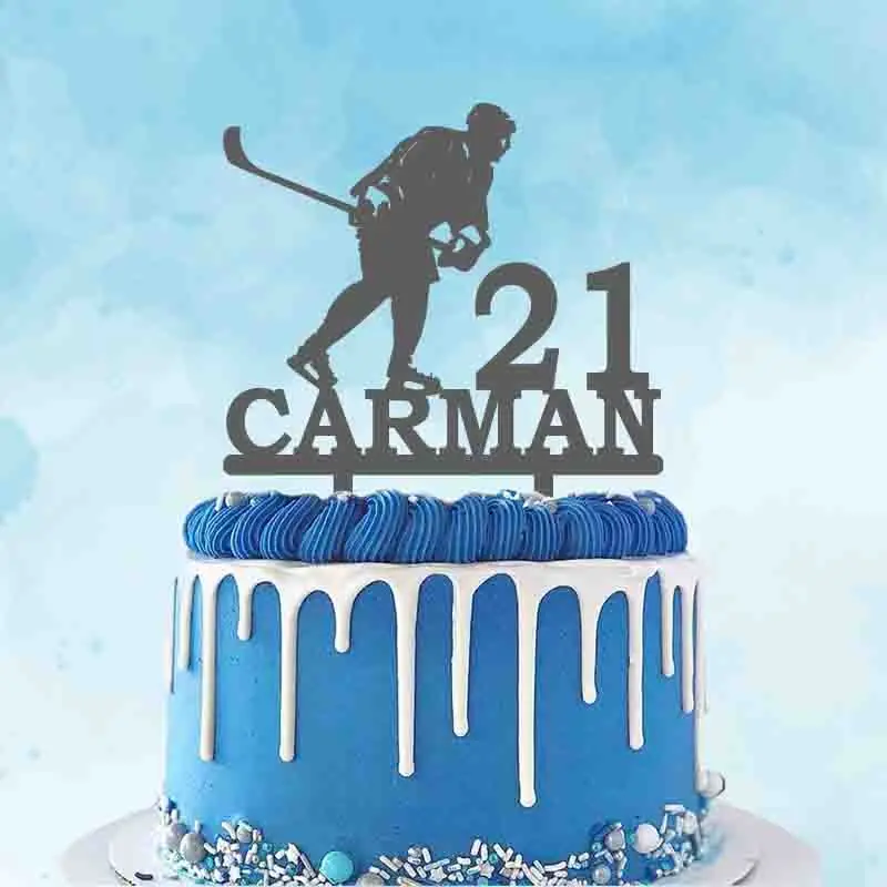 Персонализированный Топпер для хоккейного торта с именем на заказ, топпер для хоккея на вечеринку в честь Дня Рождения, украшение для торта