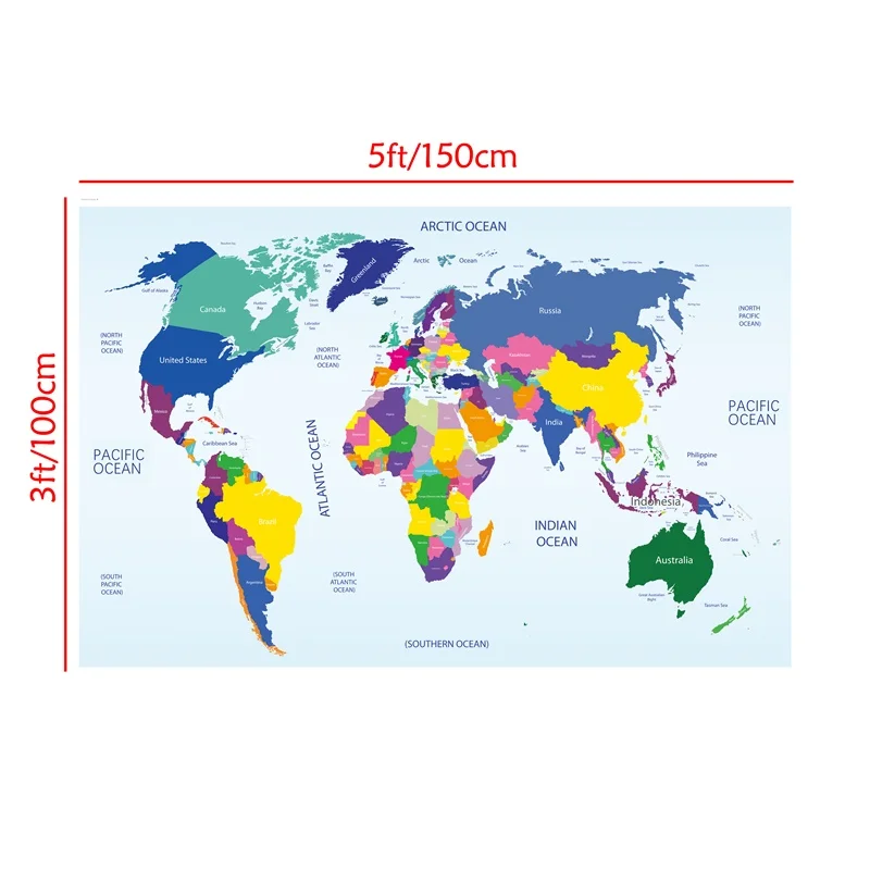 Цветная Нетканая карта мира, 150x100 см, трафаретная карта страны, большой размер, настенная наклейка, постер для офиса, школы, образование, Настенный декор