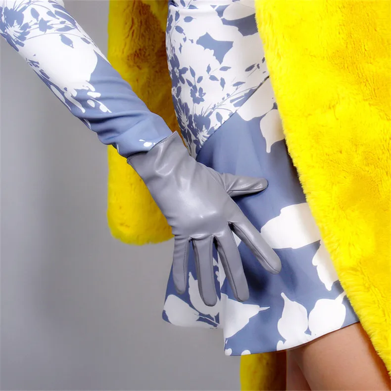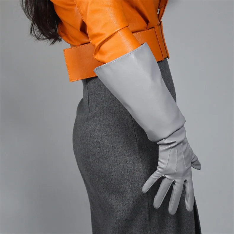 Длинные кожаные перчатки женские, 50 см, свободные, с большим рукав...