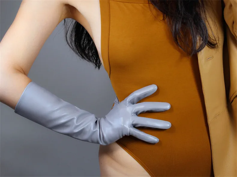 Экстра длинные кожаные перчатки 70 см Искусственная кожа овчины мат...