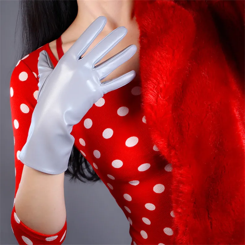 Перчатки из лакированной кожи, короткие зеркальные перчатки из иску...