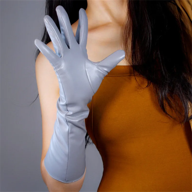 Перчатки женские из искусственной кожи, 70 см, серебристо-серосветильник цвета