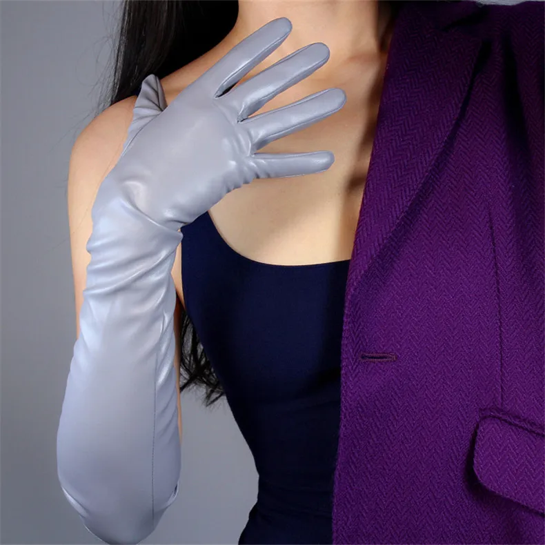 Удлиненные кожаные перчатки, 70 см, из искусственной овечьей кожи, ...