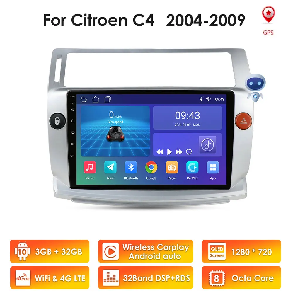Автомагнитола 2 ГБ + 32 ГБ, Android 10, для Citroen C4 C-Triumph C-четыре 2004-2009, автомобильный dvd-плеер, автомобильный аксессуар, 4G, мультимедийное Авторадио, ПК
