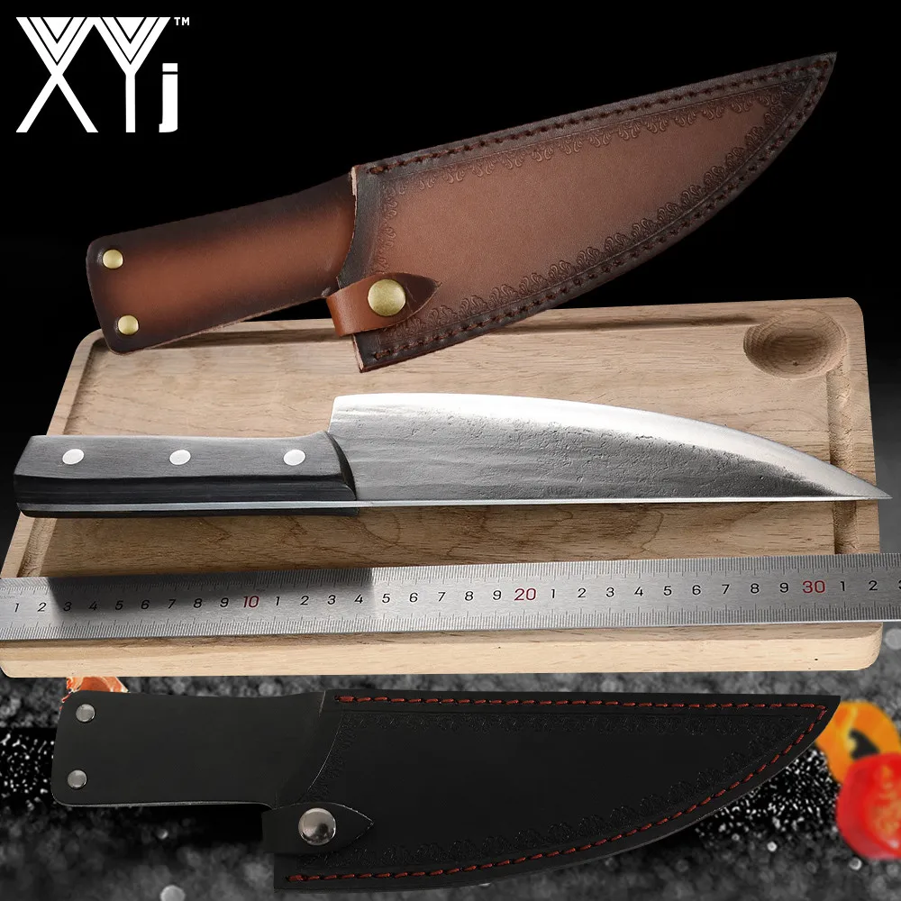 Нож для ковки XYj, походный сербский нож шеф-повара, полностью нарезанный кухонный нож мясника, чехол, защитные кромки