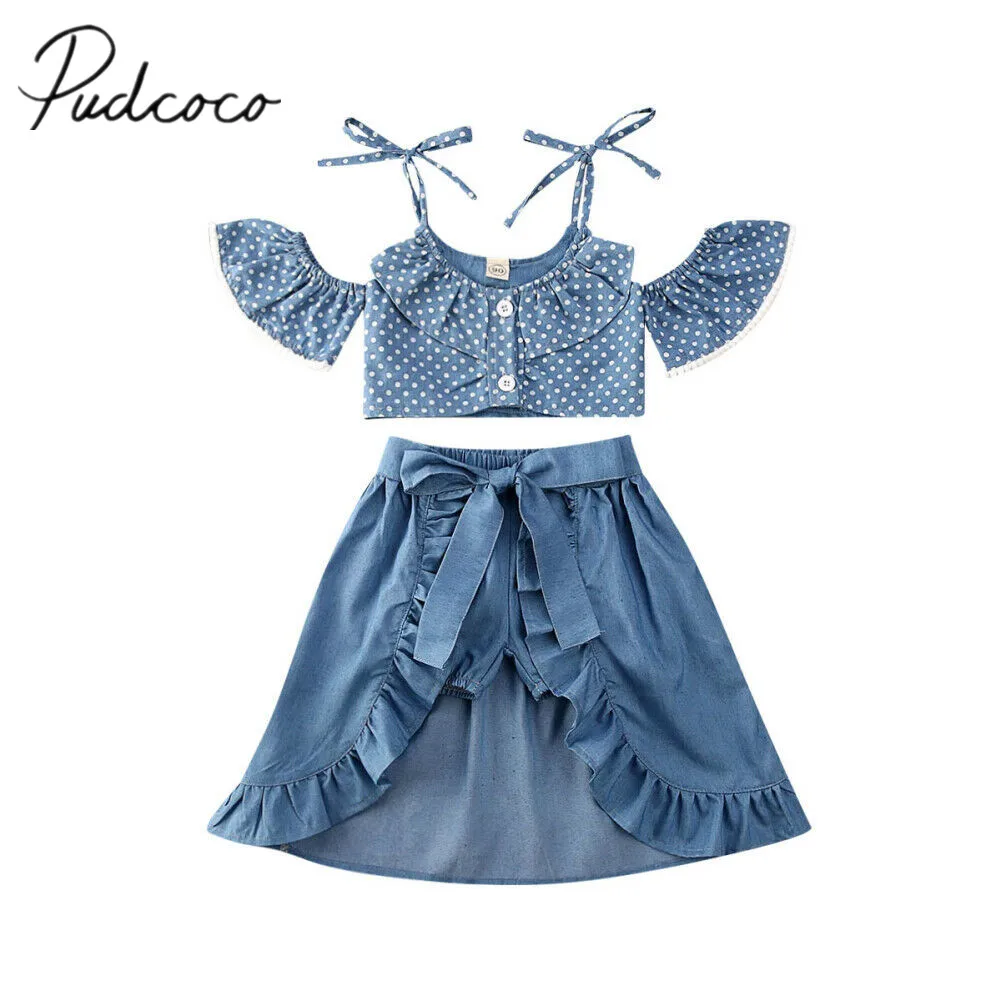 Детская летняя одежда 2020, 3 шт., для малышей, для маленьких девочек, укороченные топы в горошек, рубашка + платье с оборками + шорты, одежда