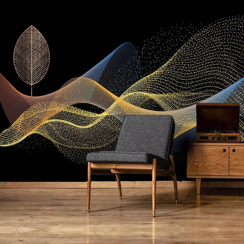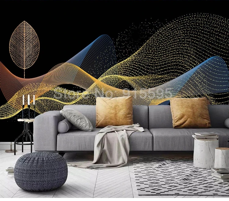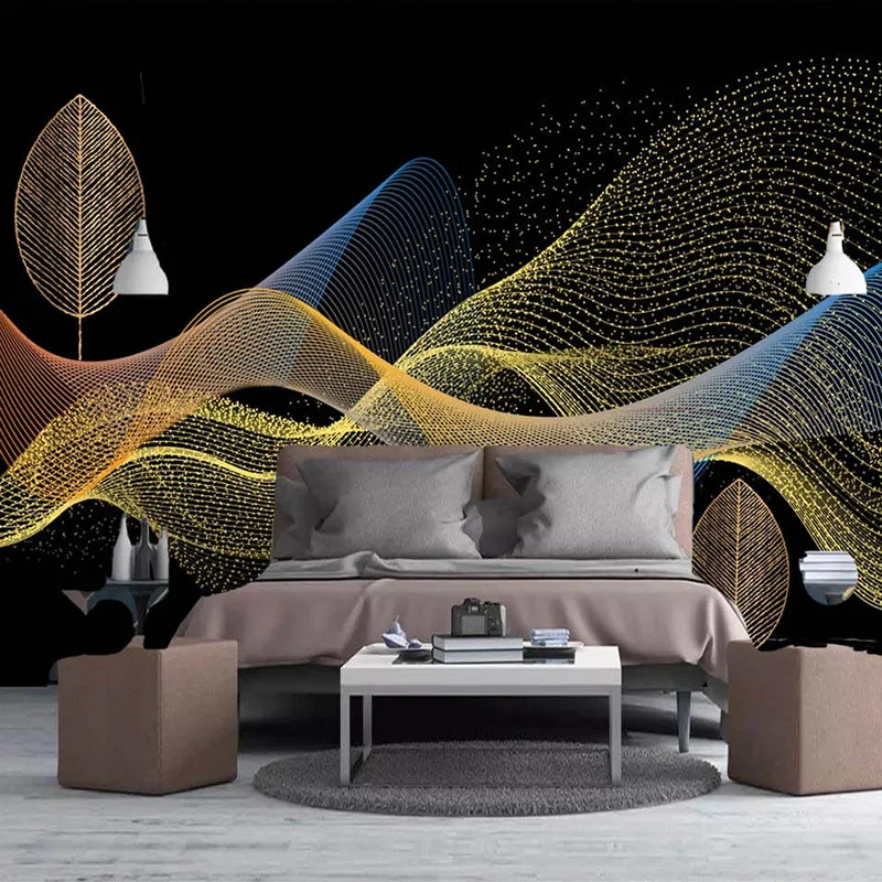 Настенная 3D Бумага для фотографий с золотыми листьями, абстрактная дымовая настенная живопись, креативная прикроватная настенная бумага для отеля, спальни, гостиной