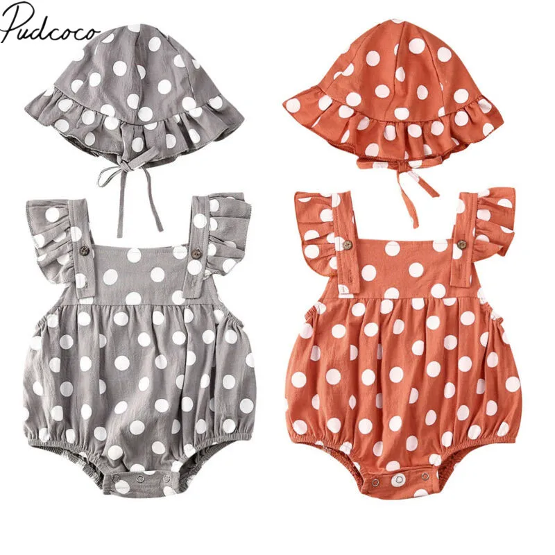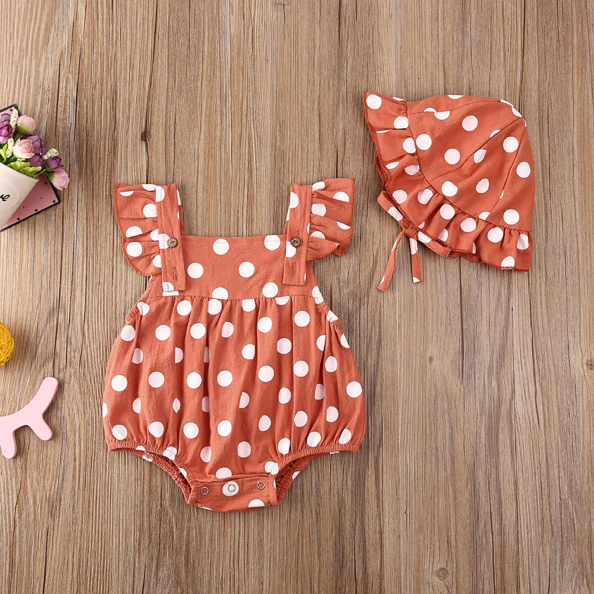 2020, летняя одежда для новорожденных, малышей, маленьких девочек, шапка, комбинезон, боди, одежда с принтом в горошек, солнцезащитный костюм