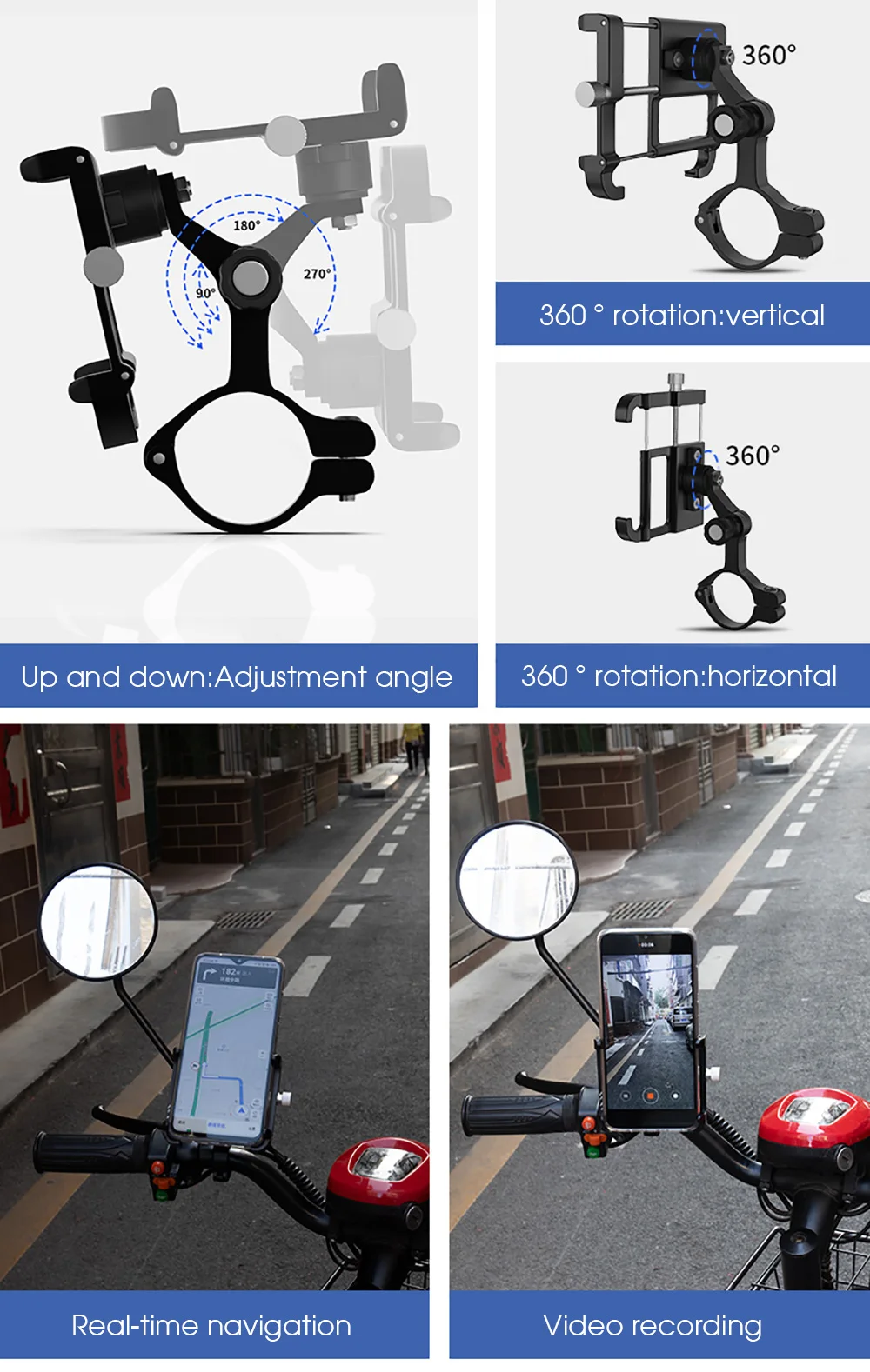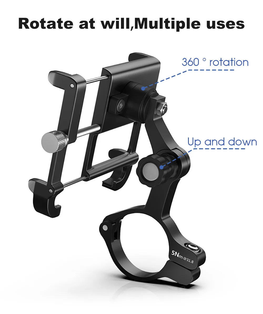 Название: Новый велосипедный держатель для телефона с поворотомЦвет: черныйШирина: 60-100 ммДлина: 75 ммМатериал: алюминиевый сплав + технология ЧПУВращение: плоское вращение на 360 градусов и вертикальное вращение на 210 °Размер руля: от 22,2 до 31,8 ммПодходит для: от 4 до 7,5 дюймов мобильный телефонДля: Iphone 11 Pro X XR XS MAX 6 7 8 PlusДля: Xiaomi, Huawei, HTC, Zte, Samsung