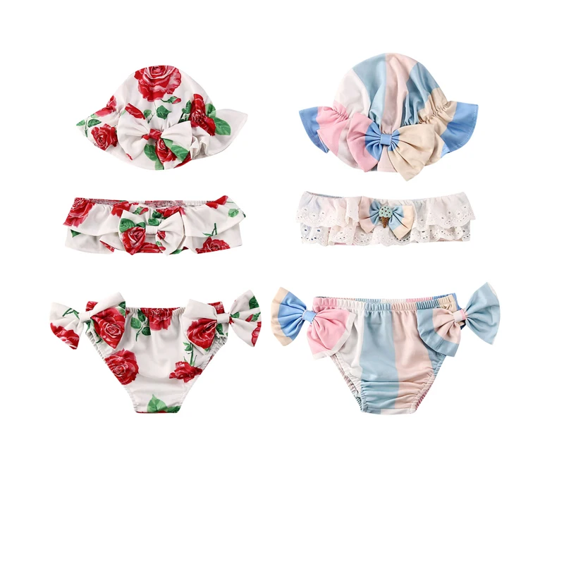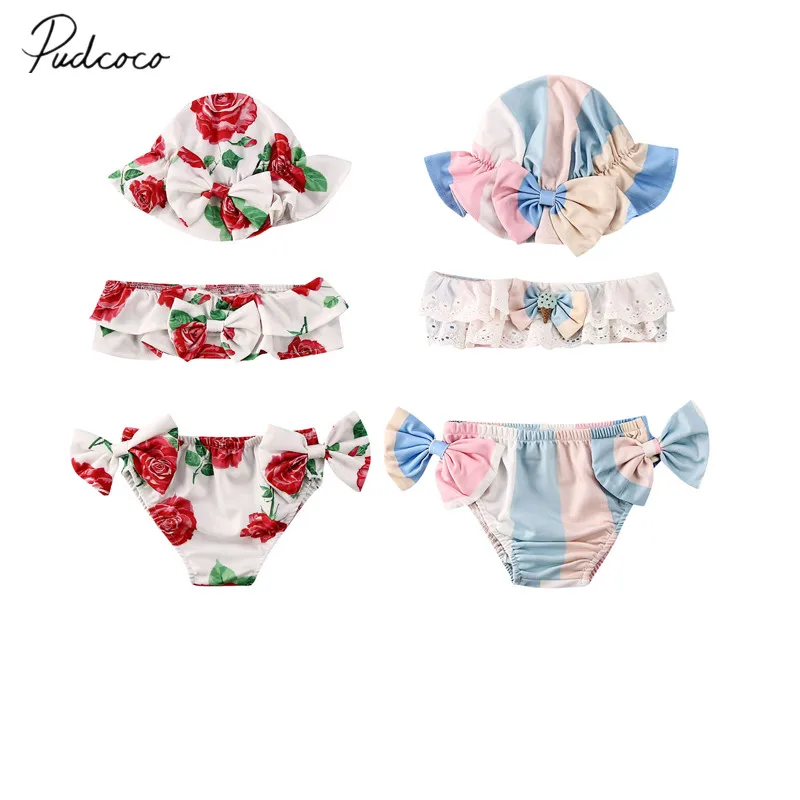 2020 летний купальник для маленьких девочек 3 шт. комплект бикини купальник купальный комплект плавательной шапки