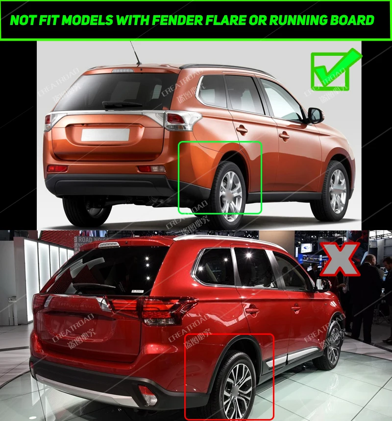 Установка: для Mitsubishi Outlander 2013-2014Не подходит для моделей с подсветкой fender или беговой доской
