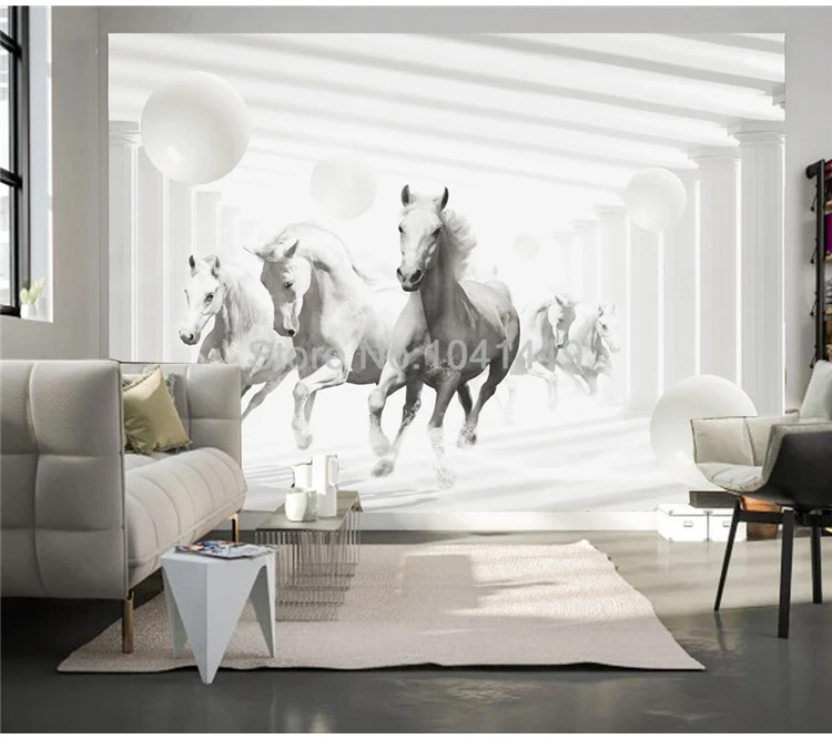3D объемные Объемные обои с объемным пространством, Белая лошадь, Fresco, гостиная, ТВ, диван, спальня, домашний декор, настенная живопись, фотообои
