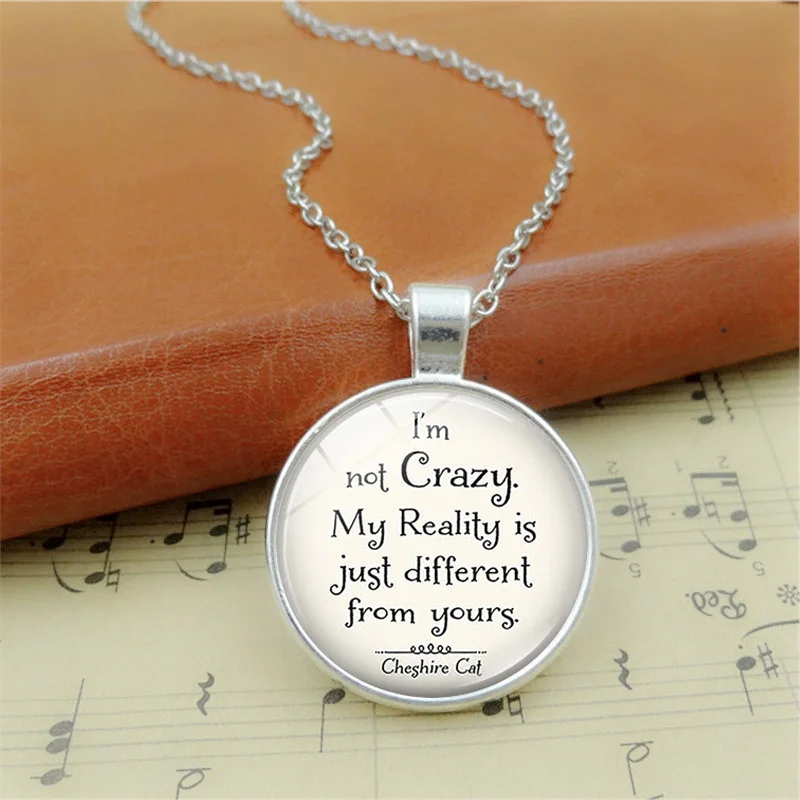 2020 я не сумасшедший Чеширский кулон цитатой Алисы в стране чудес ручная работа кулон ожерелье бижутерия со стеклянными кабошонами аксессуары