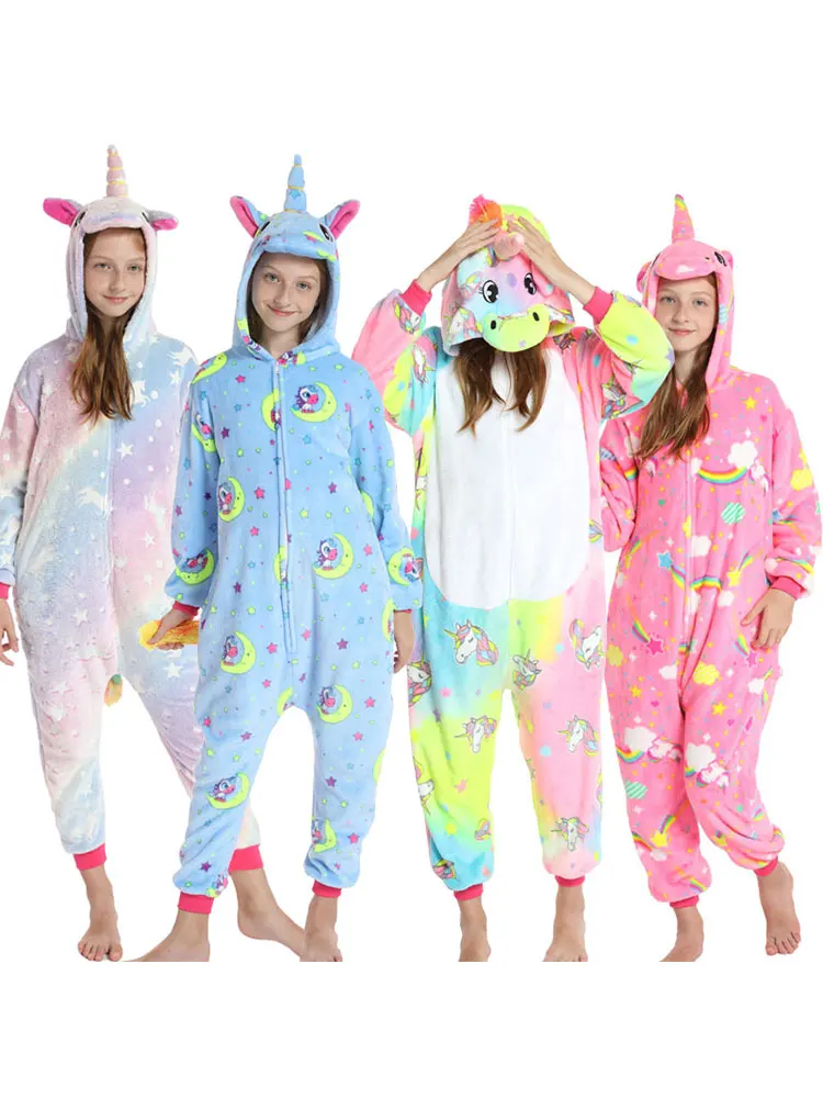 2022 зимние пижамы-кигуруми в виде животных, единорога, комбинезон в стиле аниме панды для мальчиков и девочек, детская одежда для сна, комбинезон в виде льва, кошки, Единорога для детей