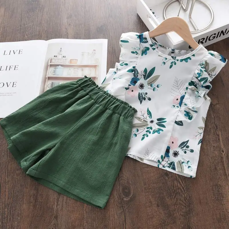 2 шт.комплект, детский летний комплект из топа с принтом фруктов и брюк