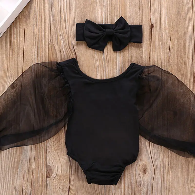 Боди с длинным рукавом, сетчатый, черного и белого цвета, для новорожденных девочек, лето 2020