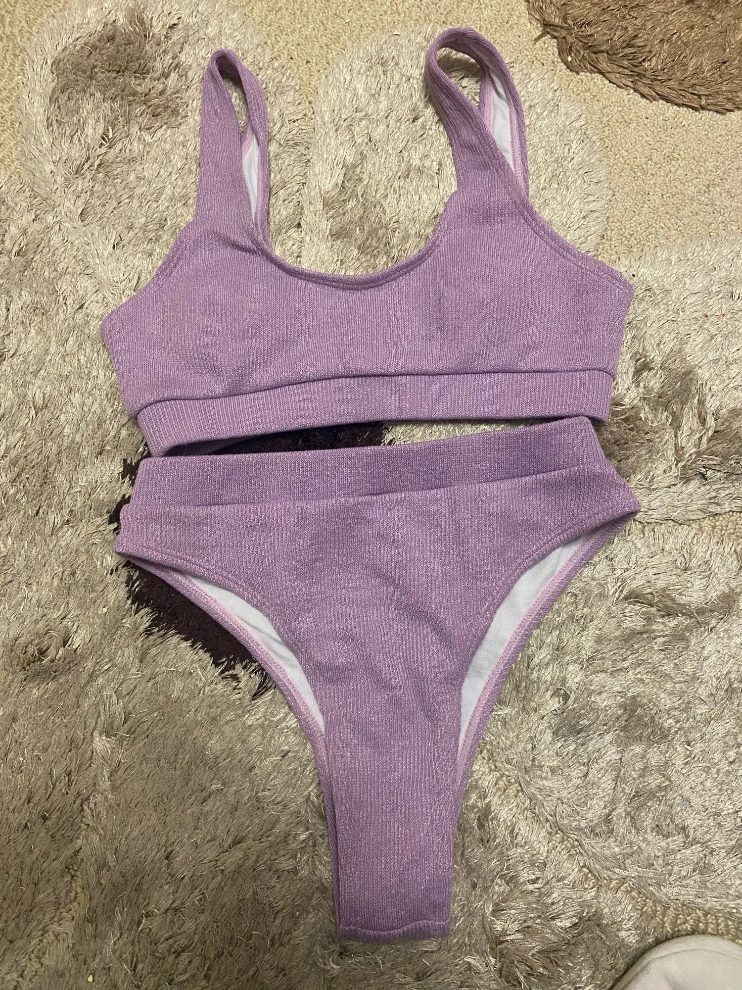 S - XL Блестящий сверкающий женский купальный костюм бикини с высок...
