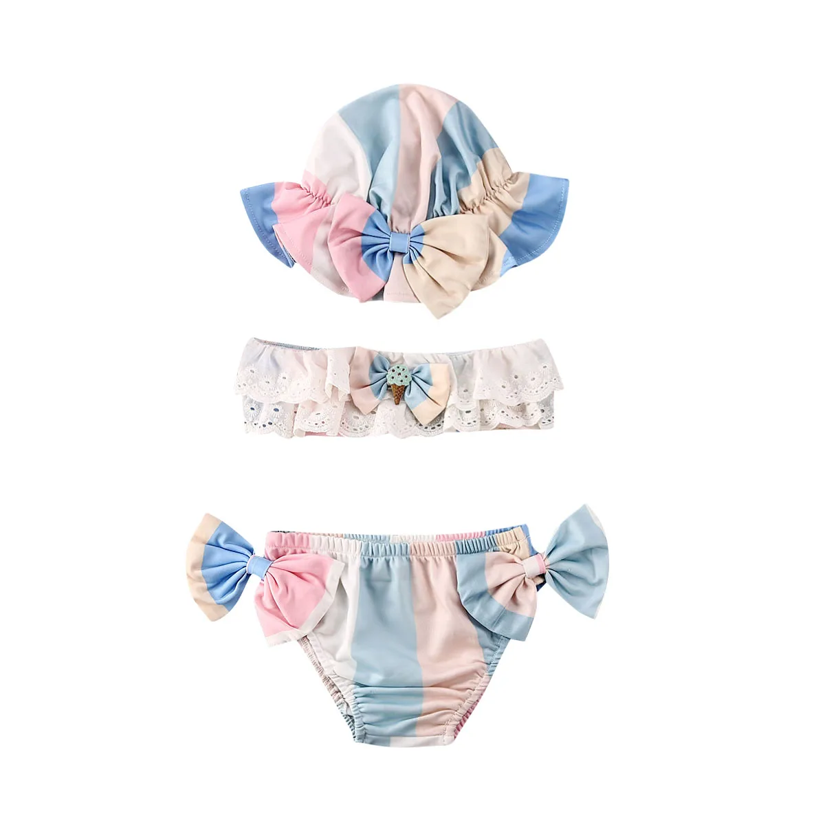 Купальник для девочек, коллекция 2020 года, летний купальник для маленьких девочек, купальный костюм, танкини, комплекты бикини + шапка, 3 шт.
