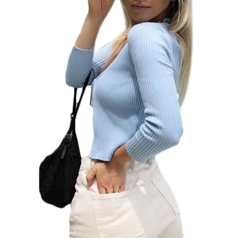 Сплошной цвет, сексуальный глубокий V-образный вырез, легко надевать и снимать, легко сочетается с любыми юбками с высокой талией, джинсами, брюками и т. д.