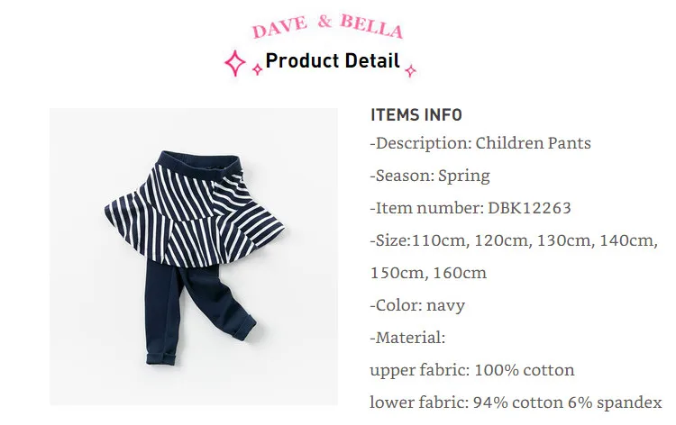 Dave bellaDBK12263 весенние штаны с драпировкой, модные повседневные штаны в полоску длиной до щиколотки, для девочек и детей, модные, для детей