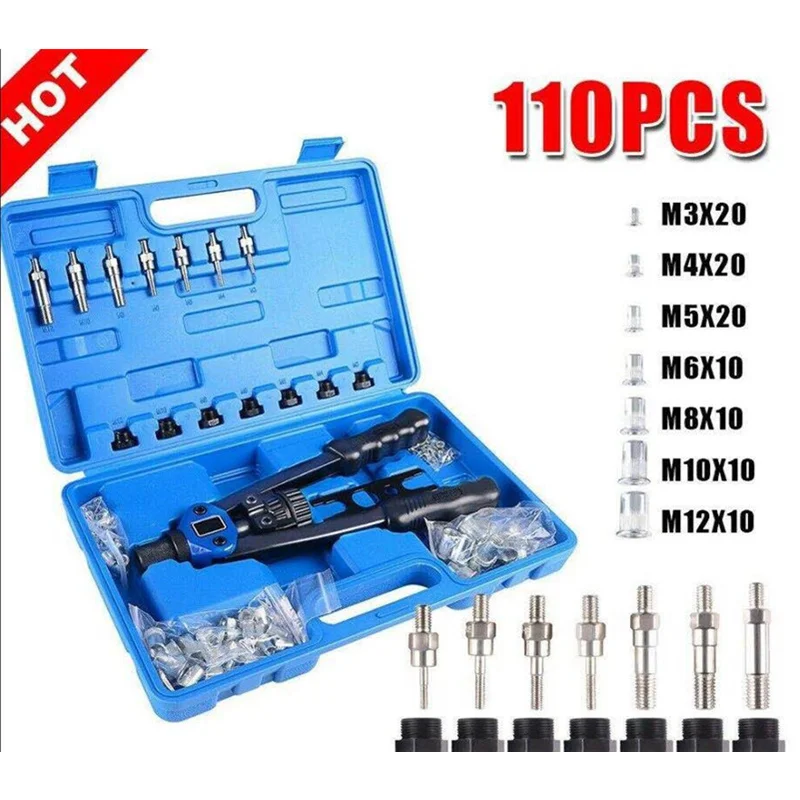 110 шт.компл. машина для ручных заклепокпистолет для заклепок, инструмент для гаек с резьбой, комплект заклепок
