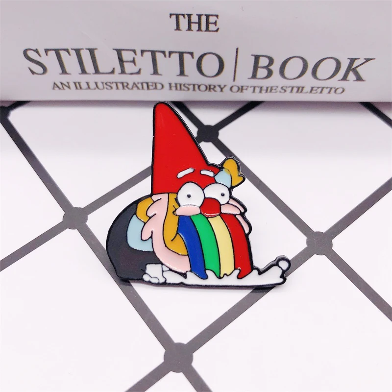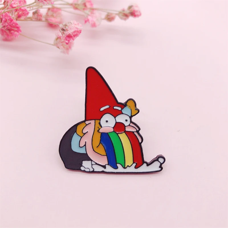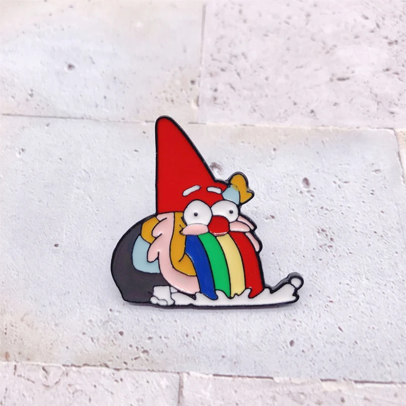 Эмалированная брошь в виде гнома радужной рвоты, забавные броши в форме животного для рубашки, лацкана, значка для сумки, мультяшное ювелирное изделие, подарок для детей, друзей