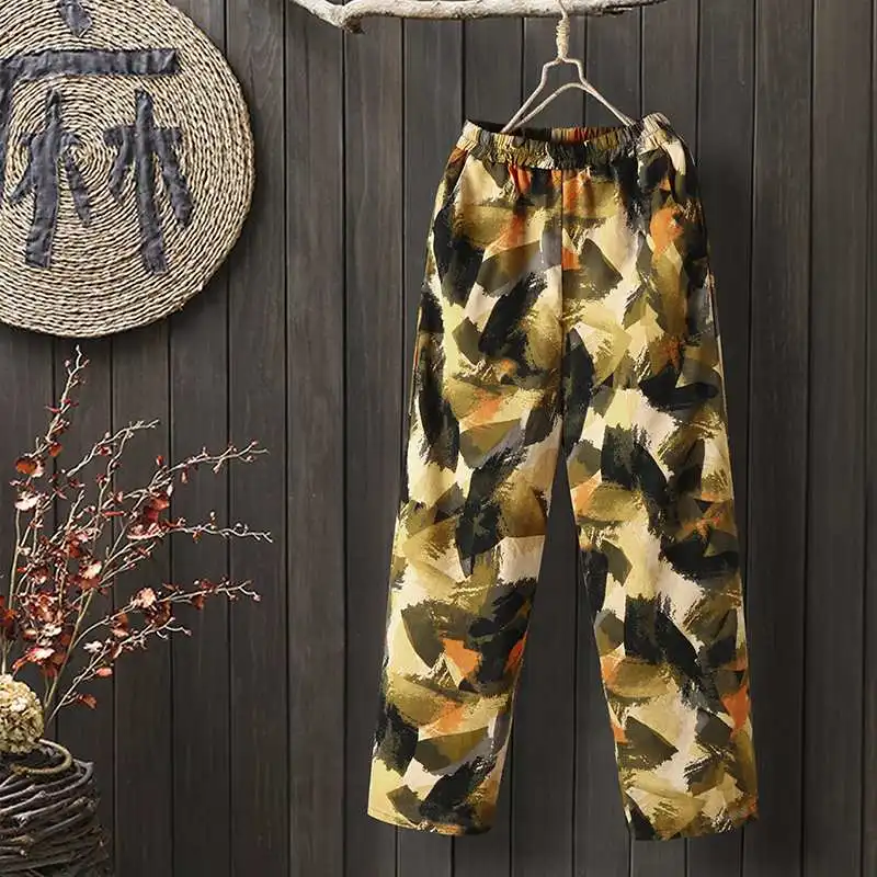 Брюки ZANZEA Женские винтажные с эластичным поясом, длинные штаны с...